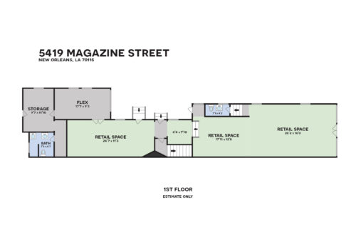 Highly visible retail storefront located along the Magazine Street Corridor just off Jefferson Avenue in the heart of Uptown New Orleans. The ground-floor space offers strong street presence within one of the city’s most established retail districts and features an open storefront layout measuring approximately 42’ x 16’, complemented by additional retail rooms, ample storage, and two restrooms. Recent improvements include fresh interior paint and new luxury vinyl tile flooring, creating a clean, move-in-ready environment suitable for a wide range of retail or service-oriented users. An exterior patio area provides added flexibility for display, seating, or ancillary use.